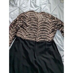 Sequin Jumpsuit Women’s L 12/14 Black Rose Gold Holiday Party Wedding NYE NWT