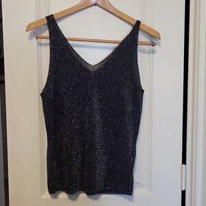 Sequin Knit V-Neck Sleeveless Top – Shiny Casual Tank, Elegant Holidays Outfit