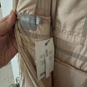 Elegant ASOS dress featuring shimmering sequins. Perfect for special occasions. Heavy dress with deep v cut on the back and front. NWT. Size 8