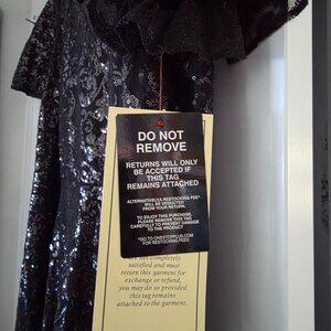 Get ready to bring the glitz, because this sequin number is all glam. Rounded neckline, flutter sleeves, concealed back zipper. Lined at the body. A-line silhouette.