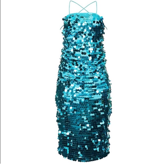 Shimmer and shine in this stunning sequin maxi dress. Perfect for evening events, this blue dress offers a glamorous look. Missing some sequins but not noticeable when wearing