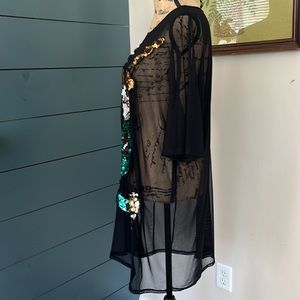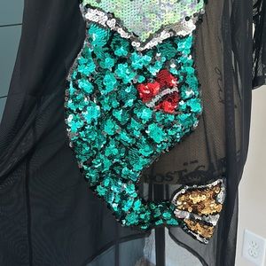 Sequin Mesh Black Multicolor Mermaid Bathing Suit Cover Up