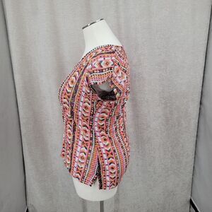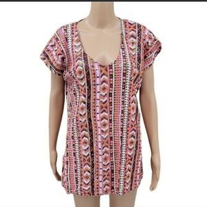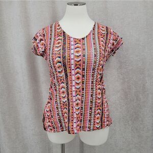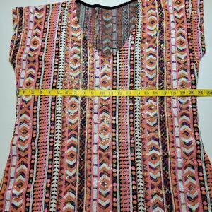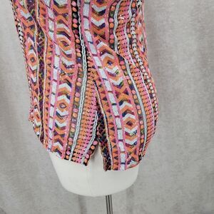Sequin Mesh Vneck Top Shirt Colorful Pink Orange White Aztec Geometric