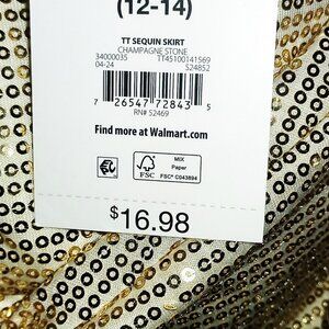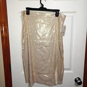Beautiful sequin midi skirt color is "champagne stone". It is goldish cream. New with tags. Large is size 12 to 14.It is a 17-inch waist.