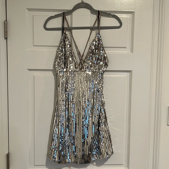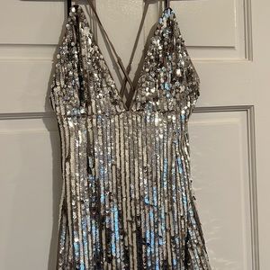 Fun silver sequin mini party dress. Soft inner lining, open back, and gorgeous color. Be your own Taylor Swift mirorball! Perfect condition. F21 sizing fits like M/L.