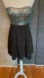 A sequin embellished bodice, strapless cut, tired skirt with A-line silhouette.