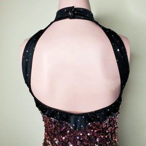 Sequin Mini Dress | Backless Halter Rose Gold | Small