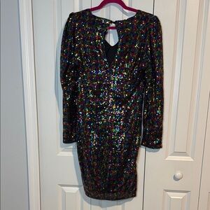 Shine bright in this stunning sequin mini dress. Perfect for a night out, this dress features a dazzling multicolor design that catches the light beautifully. Stand out with style and confidence.