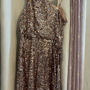 Shine in this stunning sequin one-shoulder dress. Perfect for any special occasion.