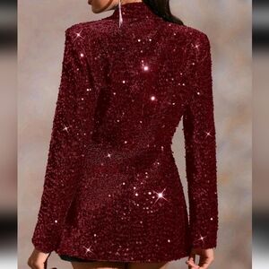 Sequin Patchwork Long Sleeve Blazer With Tie Waist Holiday Party