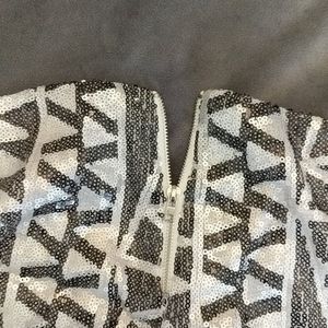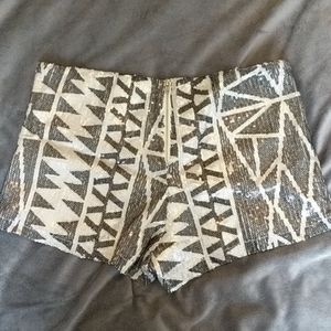 Black and white pattern sequin shorts with fully usable zipper in back! The have some stretch to them too! Great for festival outfits