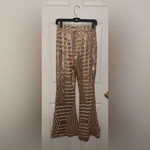 Sparkling sequin pants with a geometric pattern. Perfect for a night out.