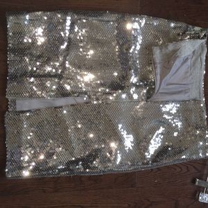 Qi Cashmere sequin pencil skirt. Lined with a jersey material so the sequence don't irritate you. Skirt is sexy and form fitting. Quality sequence not that cheap thin stuff. Negotiable & open to trade
