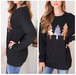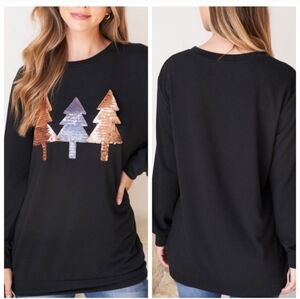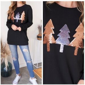 Sequin Pine Tree Long Sleeve Top NWT XL