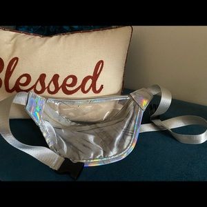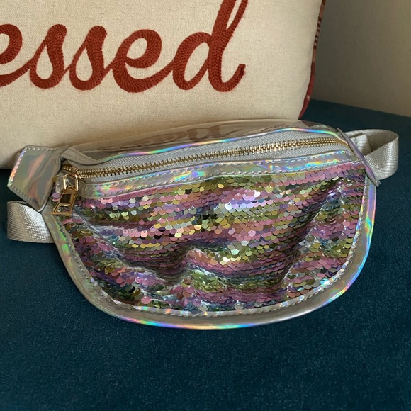 Stand out with this Silver Sequin waist pouch. Adjustable straps. Minor markings on clear backing, not noticeable when wearing.
