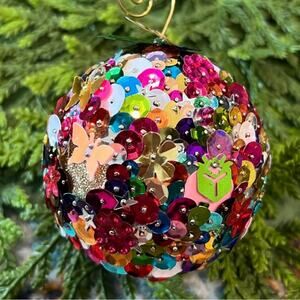 Sequin Push Pin Ball Christmas Ornament Multicolor Colorful Butterflies Flowers