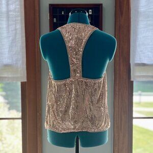 Extra small, sequin tank top with racerback in pink/rose from Free People. New with tags, never worn. I've looked over the blouse and can't see any flaws. If there are any flaws, they certainly won't be noticeable when wearing. Please view all the photographs as they are part of the description. Thank you for taking a look!