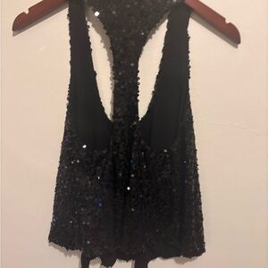 Elegant black sequin tank top. Ideal for evening wear.