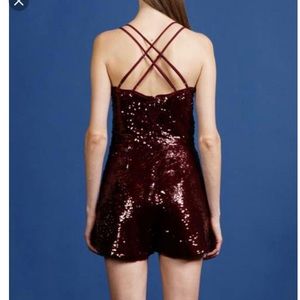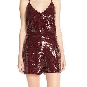 Brand new Adelyn Rae sequin romper the color maroon. Adjustable straps to fit size.