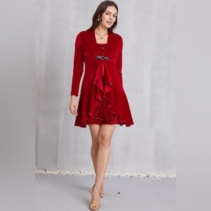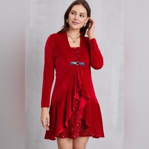 Sequin Ruffle Hem Long Sleeve Mini Dress