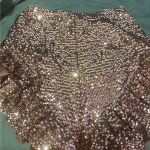 Shimmering sequin ruffle skirt in brown/gold.