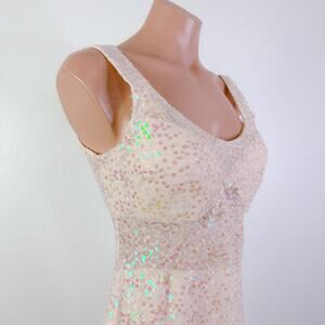 Nightway Sequin Scoop Neck Sleeveless Gown Maxi Dress in Champagne Sz 8 NWT