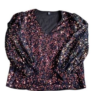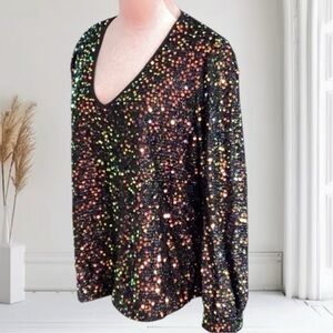 Sequin Shine Multicolor Fabric Long Sleeved Blouse New Sparkly Party Large