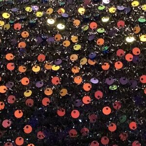 Vibrant sequin fabric with a dazzling multicolor design. Perfect for a party or night out.Large.Pit to pit 22” across.Sleeves 24”.Length 24”