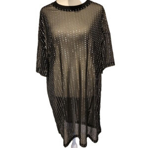 Sequin Short Sleeve Sheer Swim Coveup/Overshirt Size L