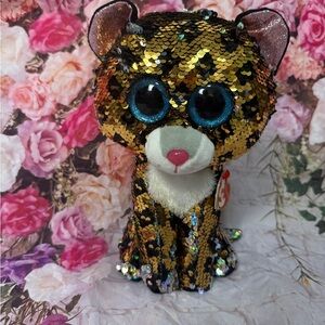 Sequin TY Flippables Leopard Plush with Blue Eyes