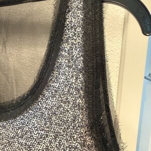 This is a finely crafted vest. The front is adorned with soft and luxurious sequins inlaid with metallic luster. The back is made of transparent gauze fabric. Sexy yet elegant. No return, Thanks!