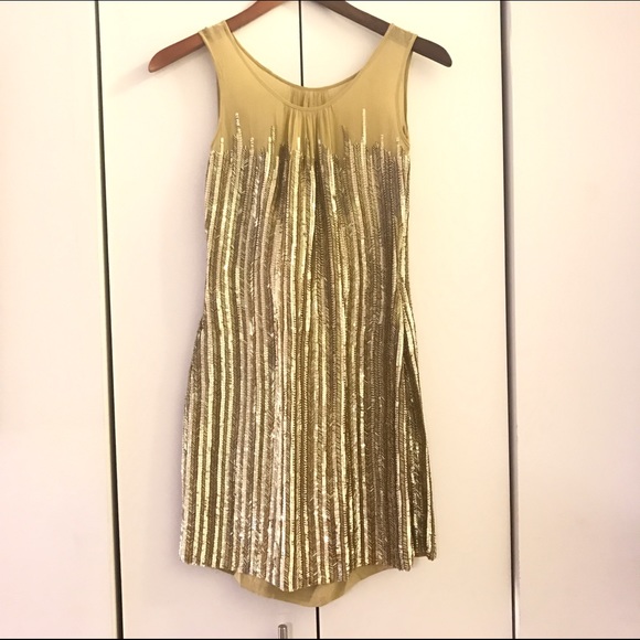 Flare dress with chevron pattern in gold tone high quality sequin and bead work with real silk lining. Very very high end sample made for a client but was never used. NEVER WORN