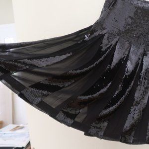 This is a great skirt! It is covered in black sequins and yet there's more...at the bottom of the torso there are pleats which reveal black chiffon! This is a fantastic skirt for dancing! Super fun, even for a small New Year's celebration!