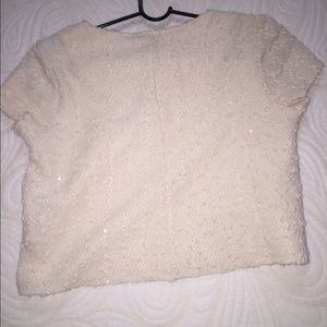 Beautiful sequin cream crop top. Back is slightly longer than the front to give a classier look. Light material. Sequins on front and back. **Runs true to size**
