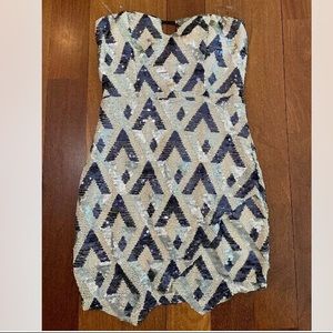 Women's Size 6-8 Medium Cocktail Evening Party Mini Dress Sequin Blue Silver