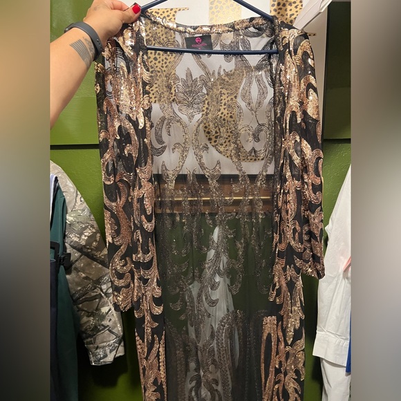 Western black mesh duster with rose gold sequin soooo pretty for a country concert or VEGAS!