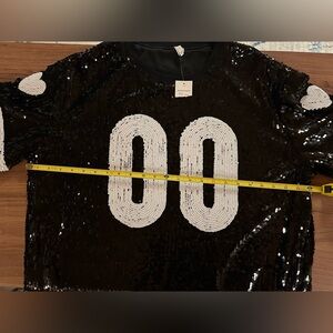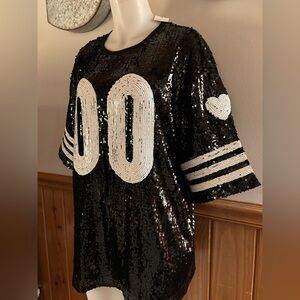 Sequin football 🏈 top, women’s size L, black and white sequins, game day, costume, bling, sparkly, short dress or long top