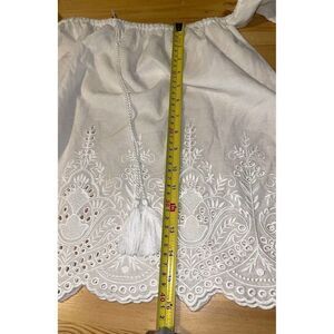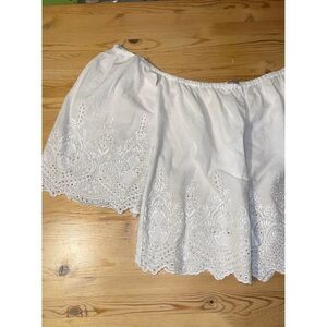 Sequin hearts off shoulder embroidered-lace blouse scallop trim blouse Small