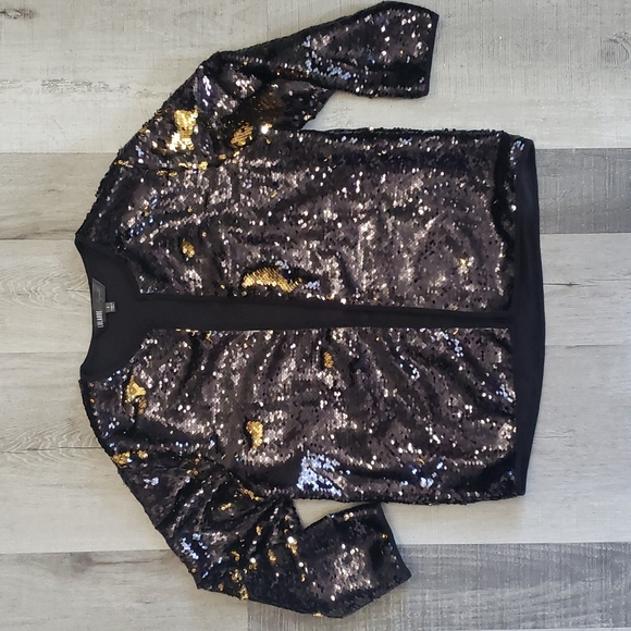 sequin jacket from LuLaRoe elegant collection. can switch it between black and gold. never worn still has the tag. super fun but haven't had the event to wear it to and now it's too small :(