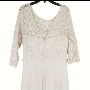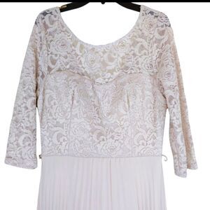 Sequin maxi long dress formal gown beige cream Miss Kim open back pleated size 6