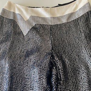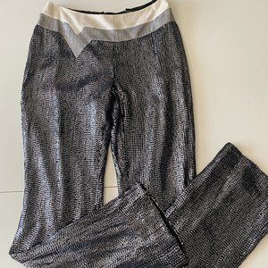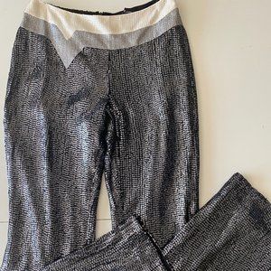 Great pant for holidays! Front and back sequined with blue black sequins, waist has cream & gray sequined inlay. Non smoking home