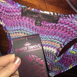 Short multi colored racer back tank top with sequins. New with tags by Almost Famous. Size L junior.