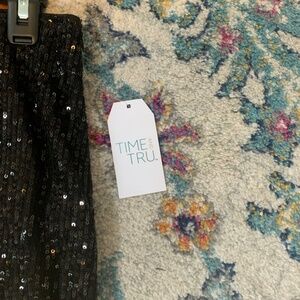 Black sequin midi length skirt. Slit on bottom going up about 4 inches. Time and tru. New with tags. Size small 4-6.