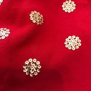 USED. Very cute red dress with gold snowflake sequins. Perfect for holiday season.