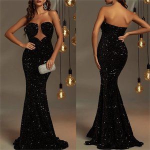 Sequin strapless mesh insert Formal Maxi Mermaid Dress Black