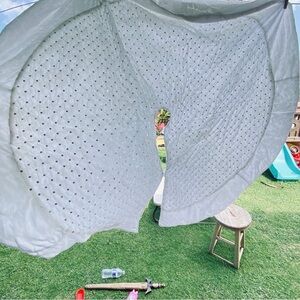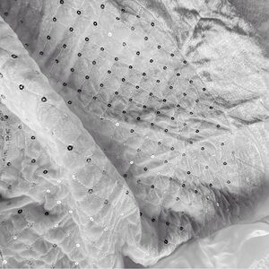 So pretty in person . It was hard to capture color. White and silver sequins with Velcro closures