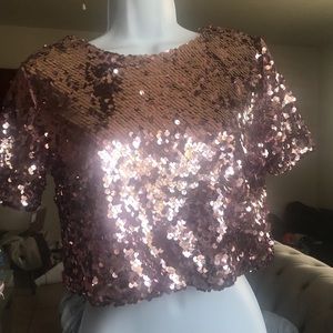 Pink blush sequins crop top blouse. From forever21. Only worn once in excellent condition. Stretchy material Size Small