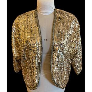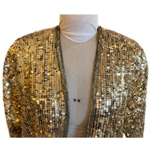 Gorgeous gold sequin evening jacket. Open front. 3/4 sleeves. In excellent condition. Lined.