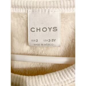 A soft cream sweater with a gold sequin reindeer on the front. Size 2-3years