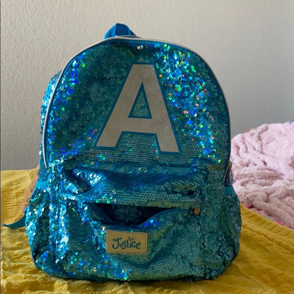 Girls turquoise sequin backpack